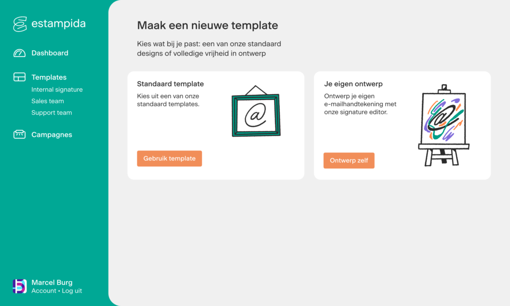 Als je nog een nieuw template aanmaakt kun je altijd kiezen uit een van onze standaard templates. Als je een betaald account hebt kun je er ook voor kiezen om met onze template editor zelf een template te ontwerpen.